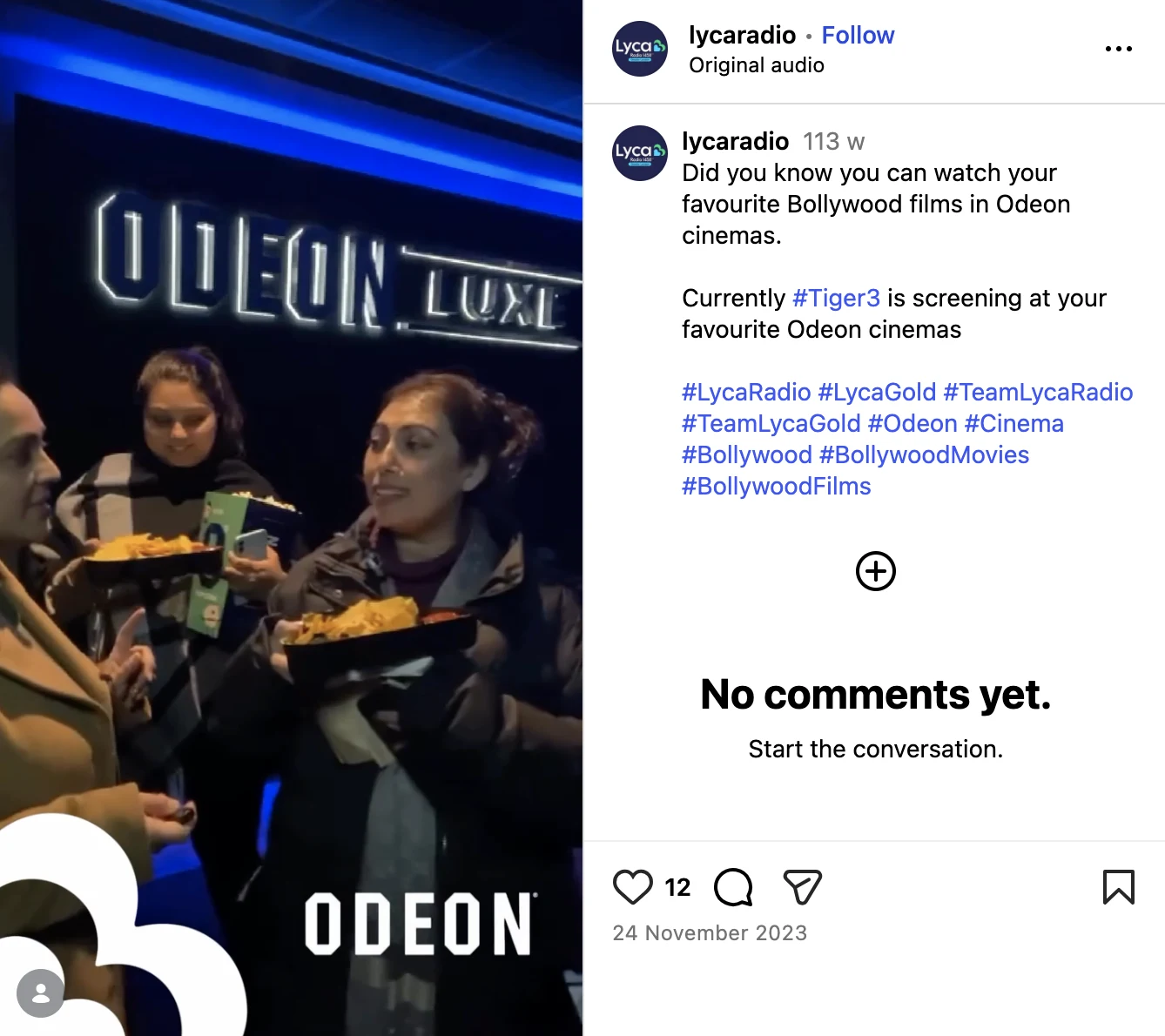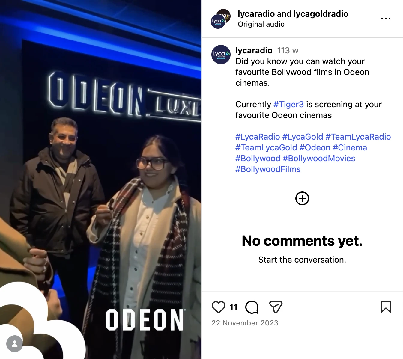 The campaign successfully positioned ODEON as the go-to destination for South Asian cinema during Diwali, driving strong awareness and attendance across key community audiences. By combining culturally relevant live reads with national and regional reach, the activity delivered high engagement, boosted opening-weekend performance, and increased consideration for both cinema visits and Diwali gift cards. The campaign exceeded planned reach and reinforced ODEON Luxe as a premium yet culturally connected cinema experience.