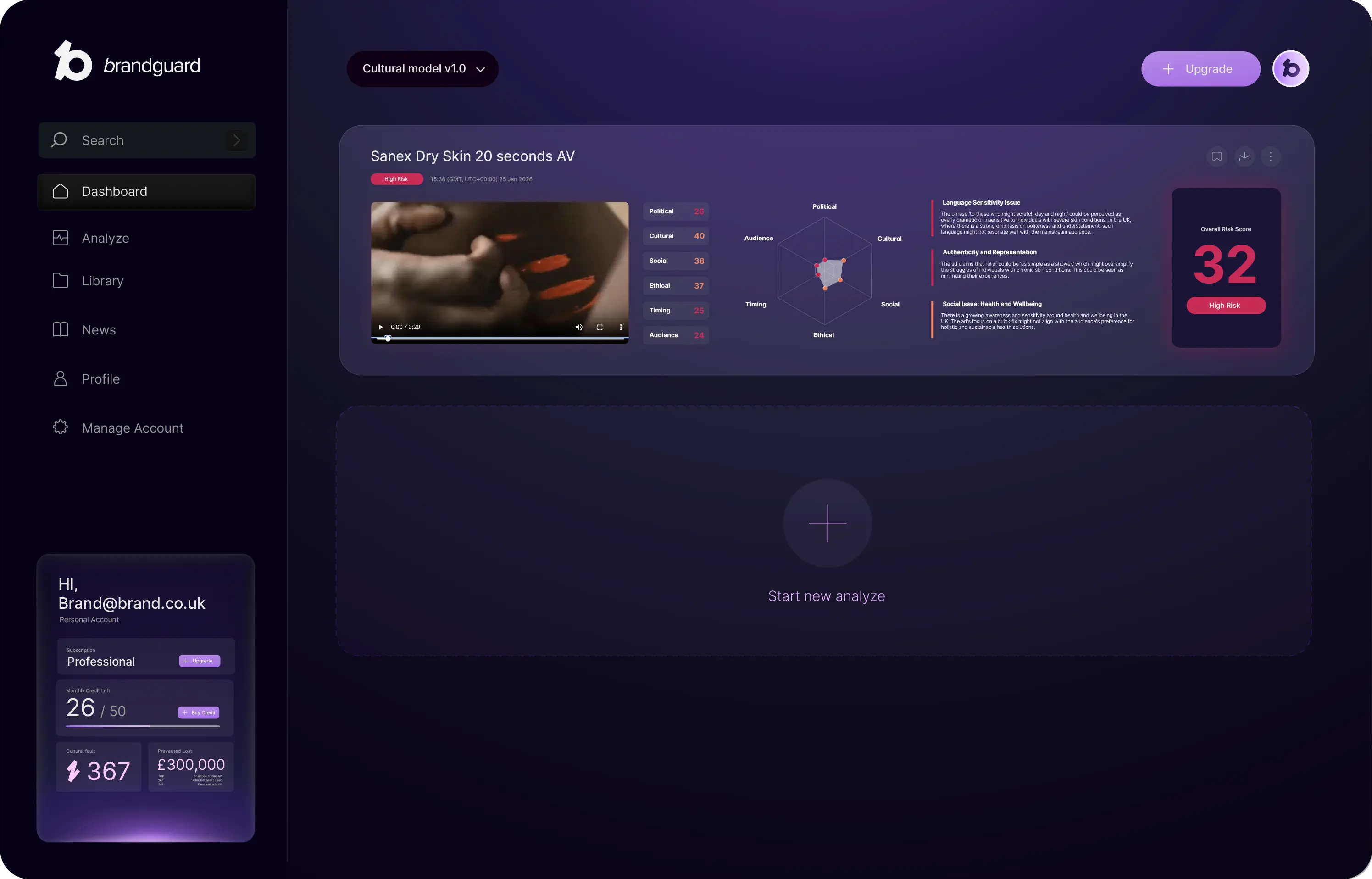 BrandGuard evaluates campaign concepts, scripts, visuals, and messages across six cultural risk dimensions, helping brands avoid missteps and ensure cultural accuracy before anything goes live. It combines AI-powered analysis with expert human oversight to protect your brand while maximizing cultural resonance.